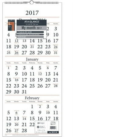 AT-A-GLANCE Recycled Three-Month Reference Wall Calendar, Rust and Gray, 12 1/4" x 27" SW115-28